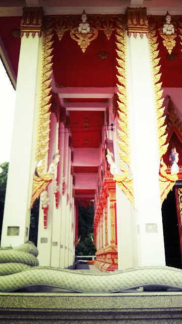 ภายนอกอุโบสถ ซึ่งกำลังตกแต่งรายละเอียดให้งดงาม