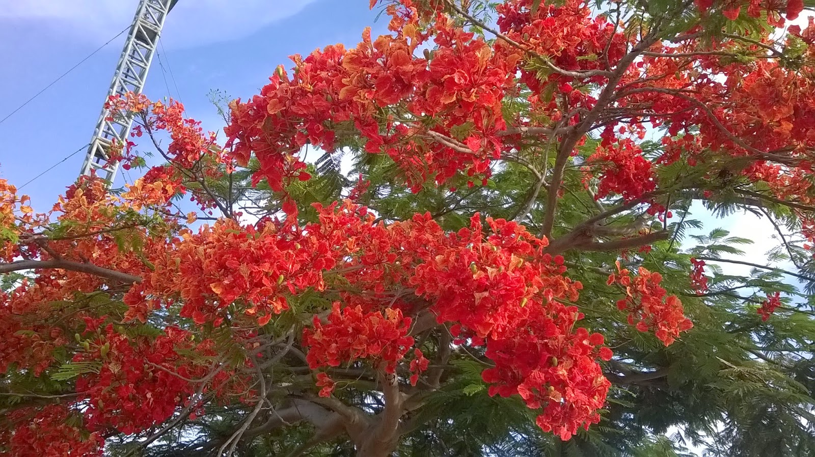 หางนกยุงสีแดงสดใส ท้องฟ้าน้ำเงินสดสวย แสงแดดสว่างจ้าสุดงามที่ธรรมชาติที่สร้างไว้เพื่อเราสวัสดีครับทุกท่าน ในวันนี้ผมมีภาพดอกไม้สีแดงบ้าง สีส้มบ้างมาแบ่งทุกท่านได้ชม ผมเองได้ผ่านไปในหลายที่หลายแห่ง และหลายจังหวัด พบว่าดอกไม้ ดอกหางนกยุงกำลังออกดอกบานสีสันสดใสมากในทุกที่เลย แล้วผมก็อดใจไม่ไหว จึงไปถ่าพภาพดอกหางนกยุงสีสวยเหล่านี้ที่สนามกีฬา สวนสาธารณของบ้านเพครับ ลองชมภาพกันนะครับ