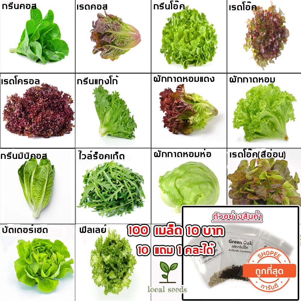 | [ขายดีอันดับ 1]🌱เมล็ดผักสลัด 100-300 เมล็ด 10 บาท 📌 งอกดีมีคู่มือการปลูก [10 แถม 1 คละได้] / เมล็ดพันธุ์ผักสลัด อินทรีย์ ฿9 |